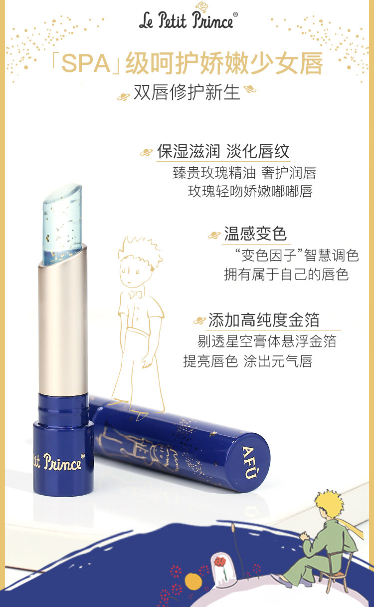 ほんのりブルーの透明リップに金箔がキラキラ 星空みたいな 星の王子さまリップ は体温で色が変わってはちゃめちゃに可愛い Togetter