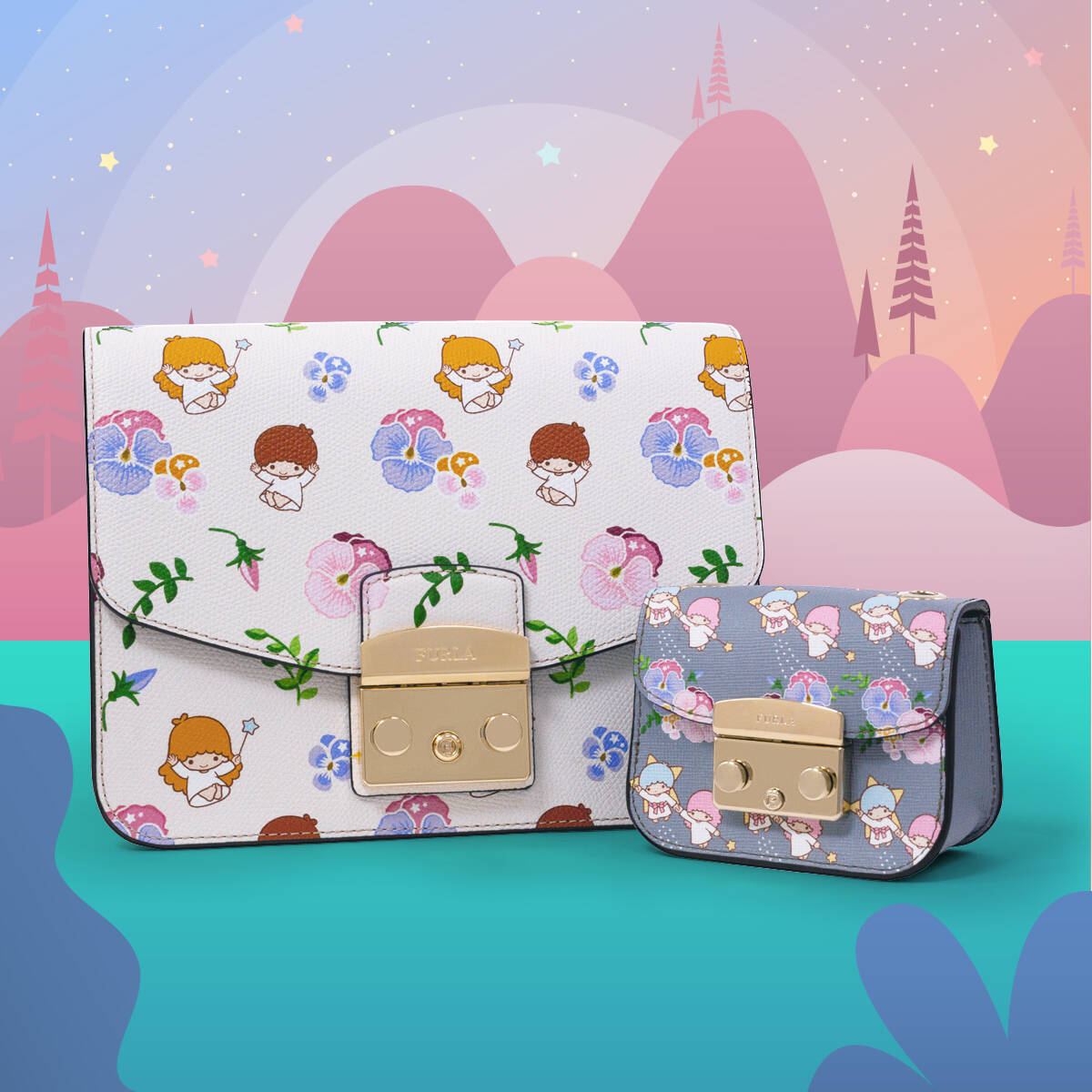 フルラとサンリオ リトルツインスターズ がコラボ キキとララを描いた銀座限定バッグ ポーチ ファッションプレス