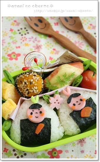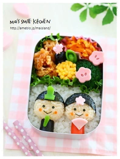 こんばんは 明日もキャラ弁教室なので 準備に追われてますが 今日もワンパターンにならない様な おにぎり型を使ったひな祭りキャラ弁 詳細はレシピをblogにupしたので 良かったら覗いてみて下さいね 人 お返事やお礼が遅れてますが必ず伺うので